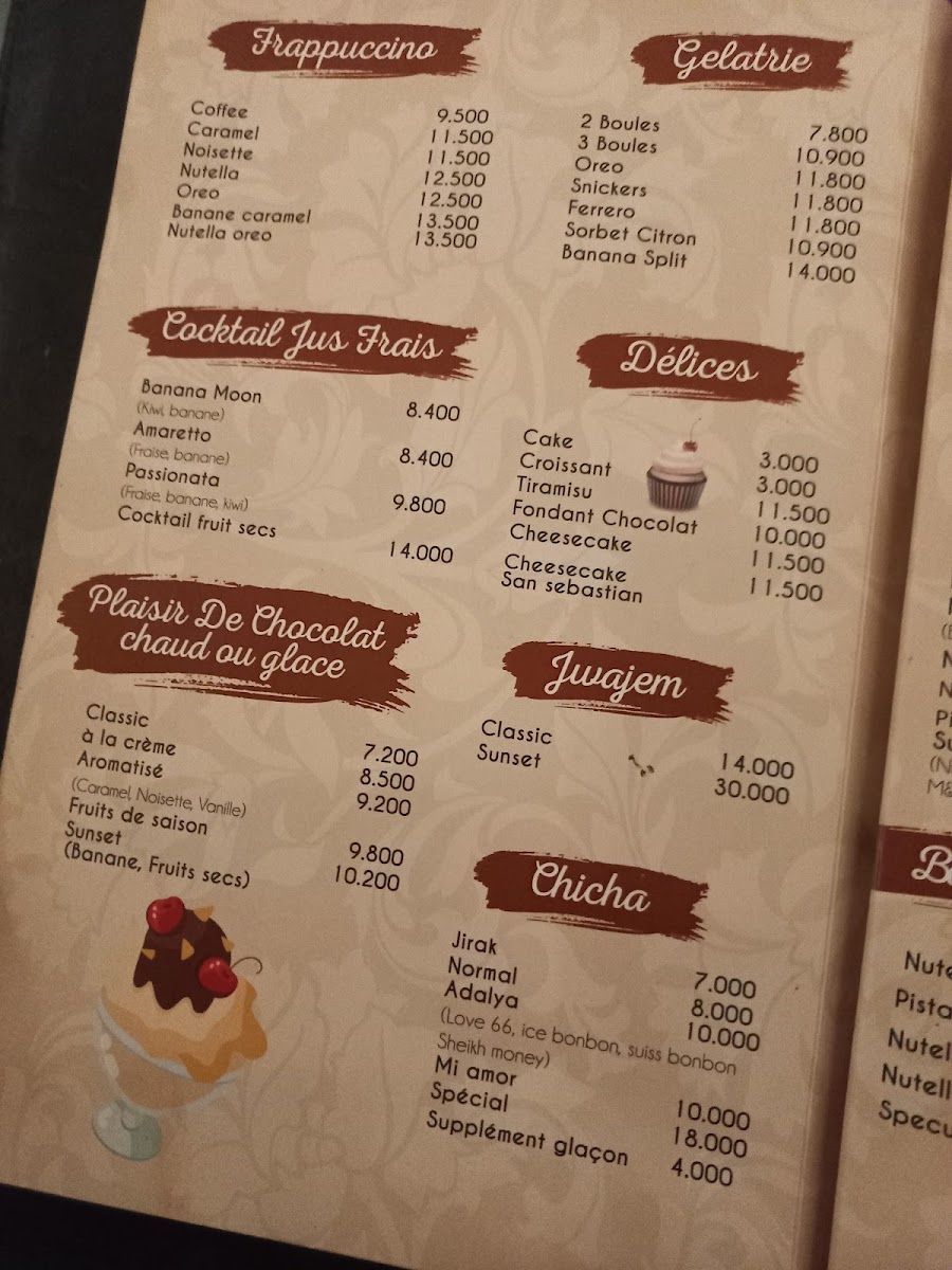 Welcome to Sunset Coffee Lounge, a hidden gem nestled in the heart of Chentech, Tunisia. This cozy cafe offers a delightful menu designed to cater to all. From artisanal coffees that awaken your senses to an array of delectable pastries that melt in your mouth, every bite is a celebration. Guests can indulge in brunch classics, made with fresh, local ingredients that emphasize quality and taste.